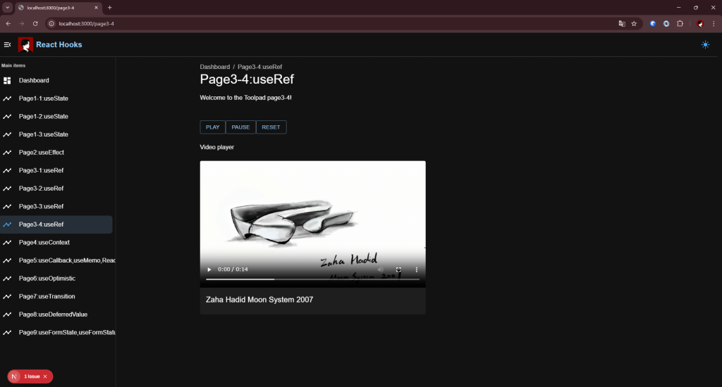 Page3_4.tsxでuseRef<HTMLVideoElement>を作成VideoPlayer.tsxにrefを渡し、 を操作可能に- ボタン (