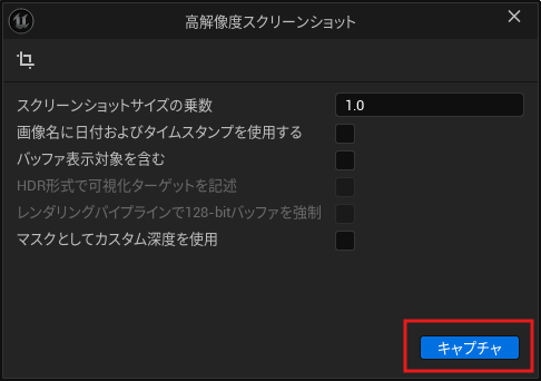 そこで簡単なパースの出力を試します。手順は簡単でパース用のカメラを配置し、「高解像度スクリーンショット」をクリックするだけです。