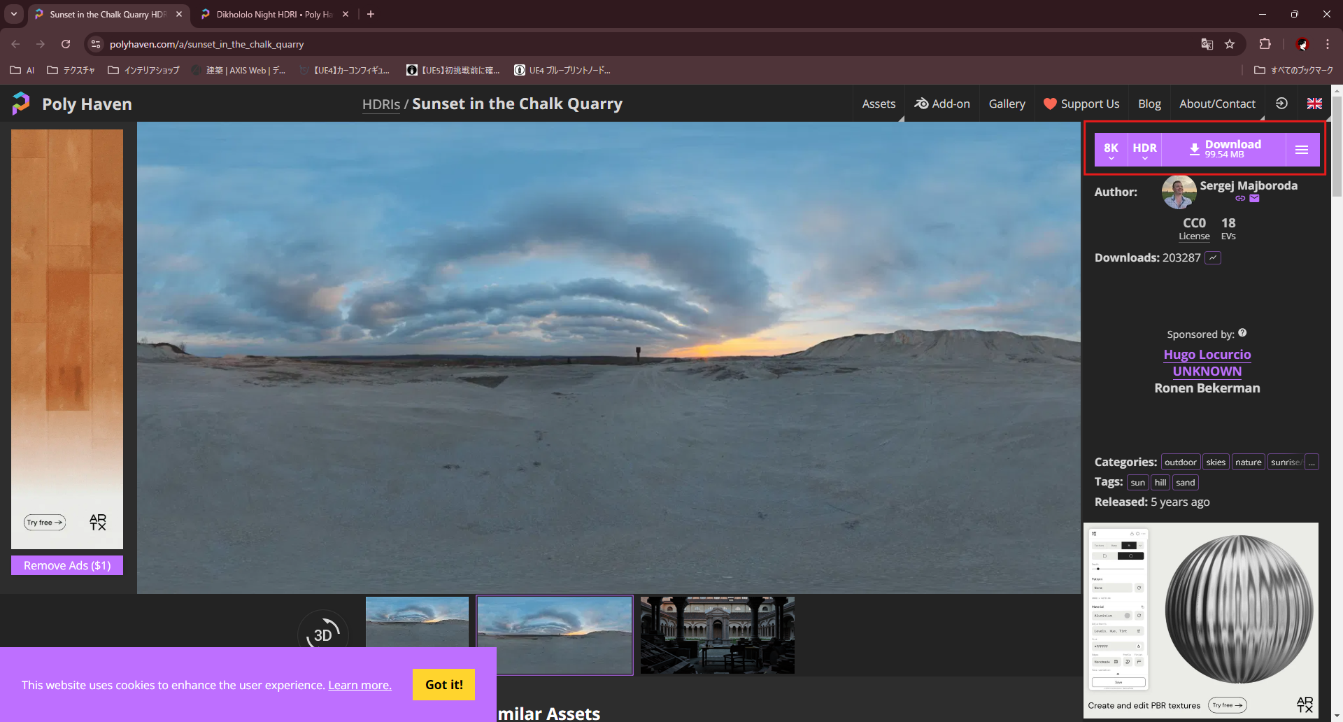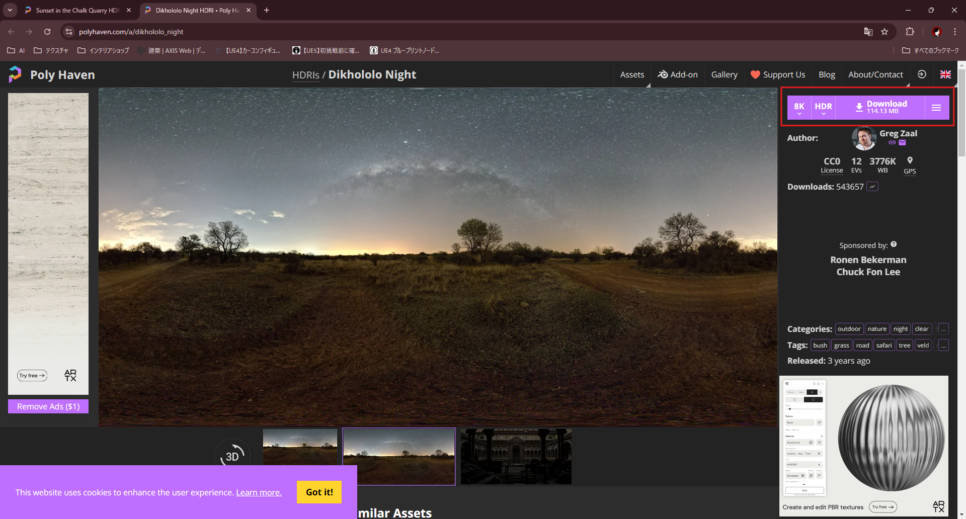 - 夜のシーン用の8K HDRIをダウンロードします。