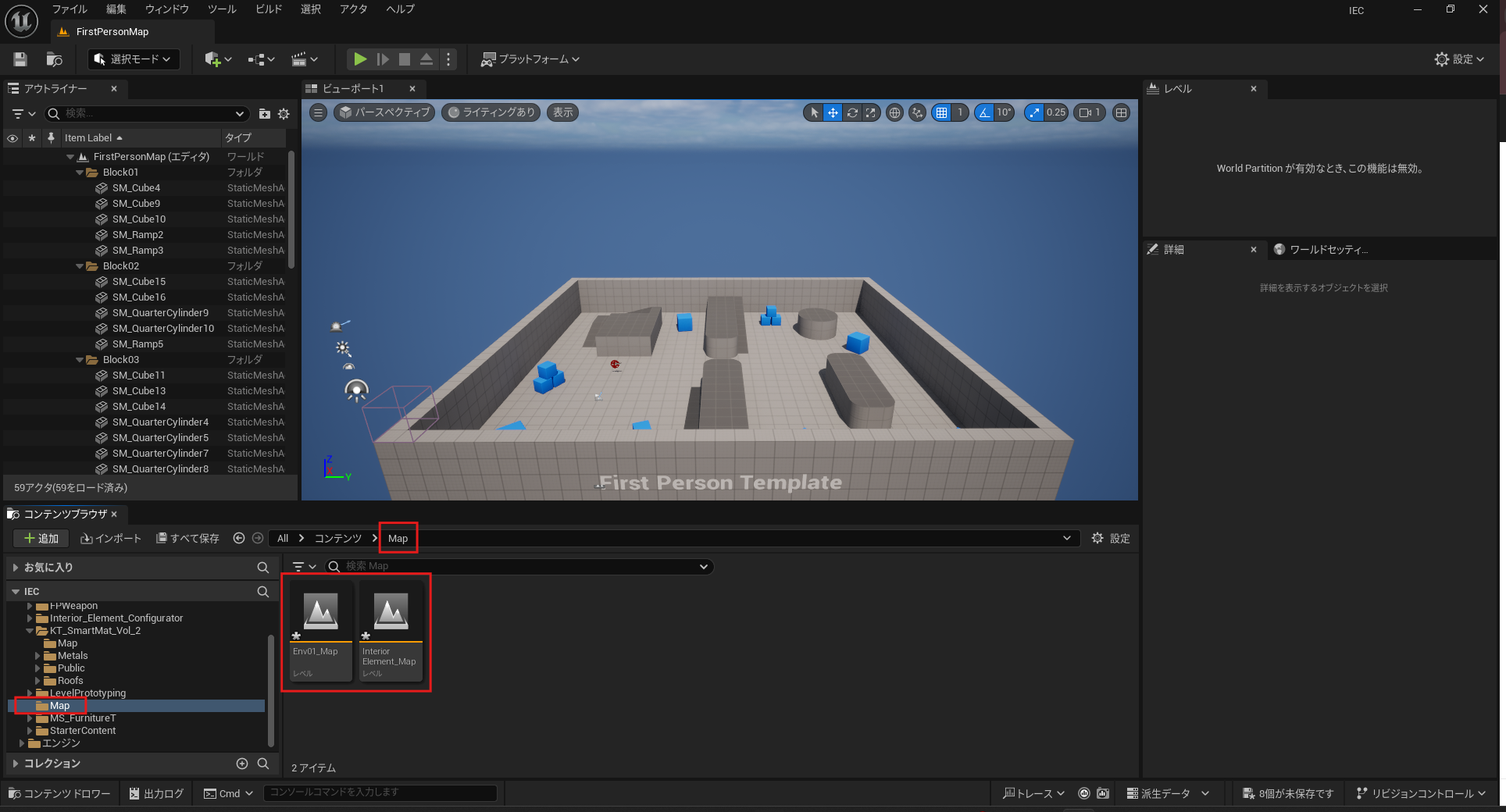 - もう1つのレベルを作成し、「Env01_Map」と名付けます。このレベルには環境に関連するものを配置します。