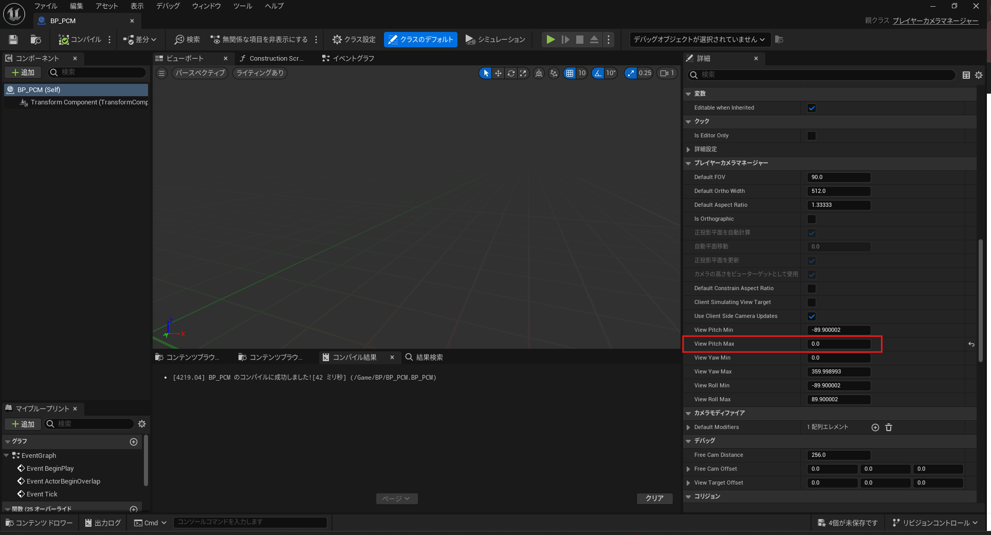 BP_PCM(プレイヤーカメラマネージャー)の設定