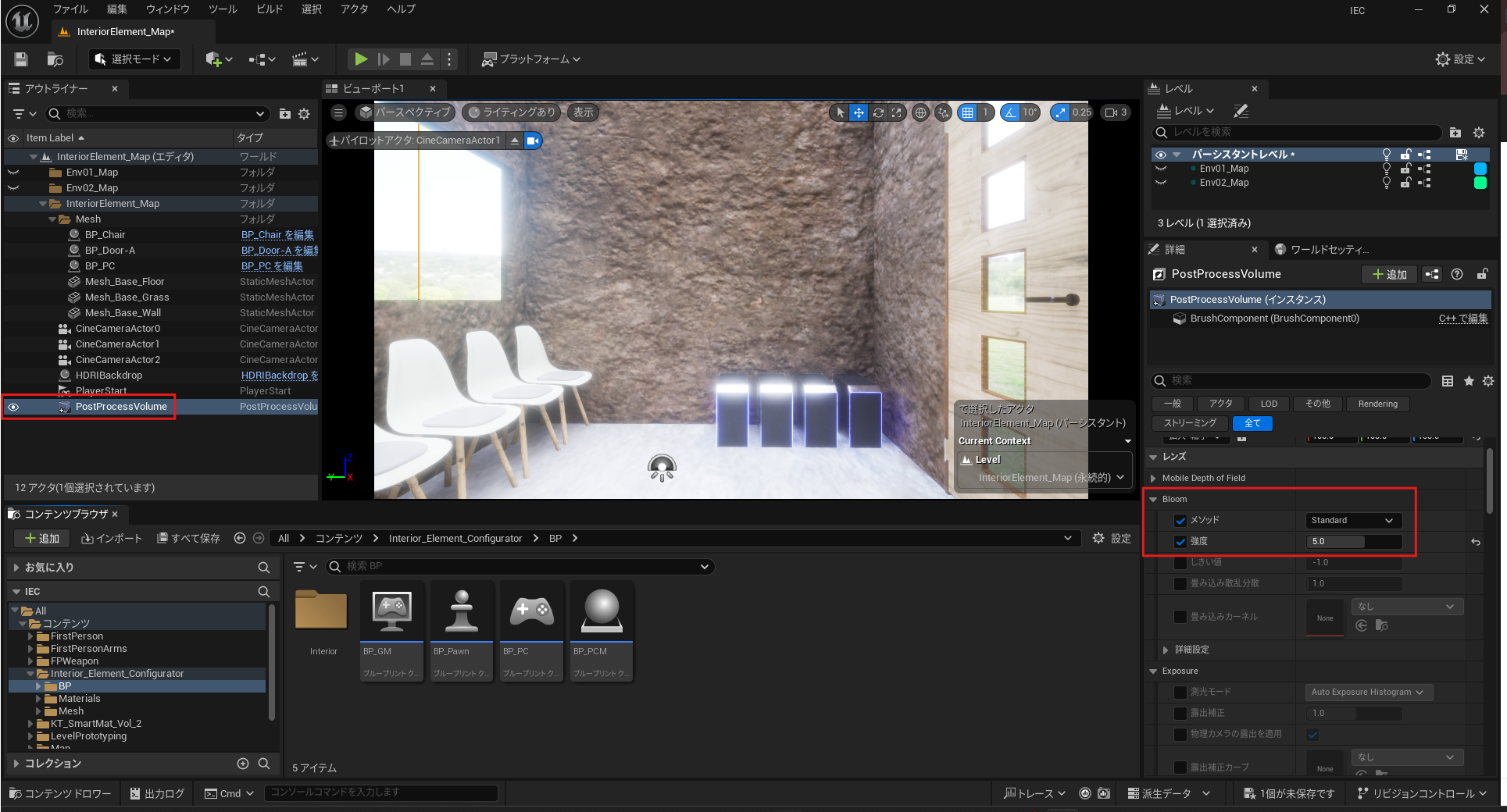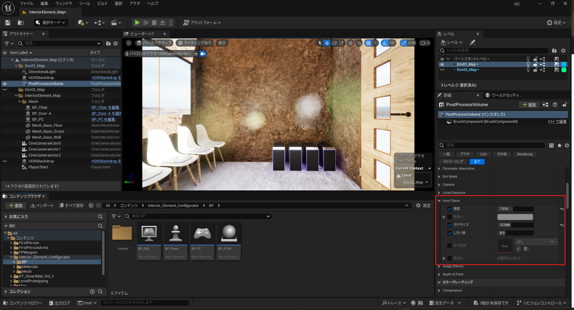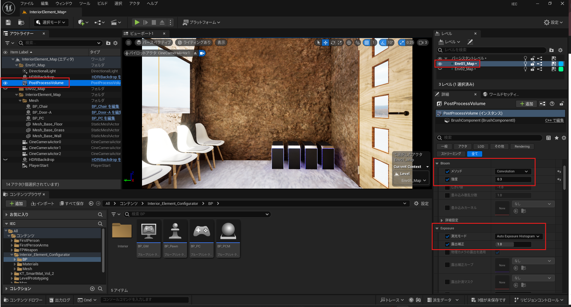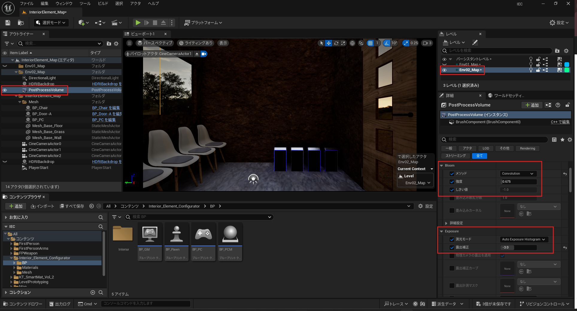Env01とEnv02のポストプロセスボリュームの設定をします。