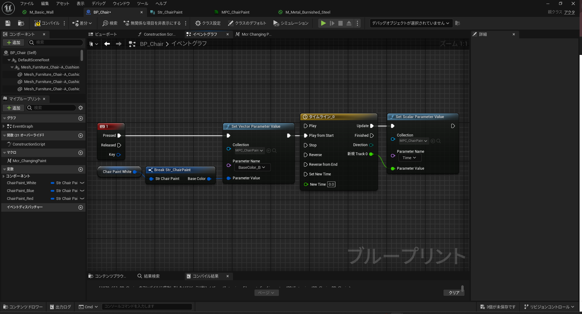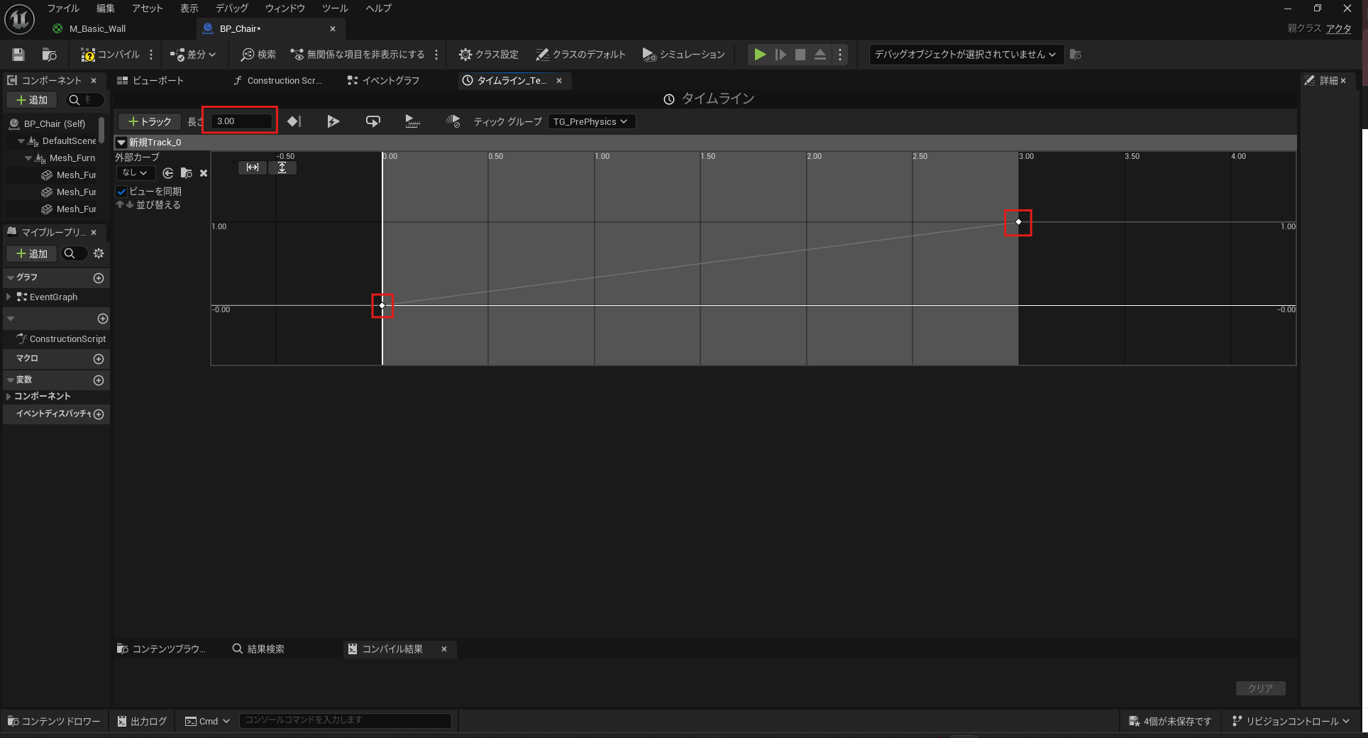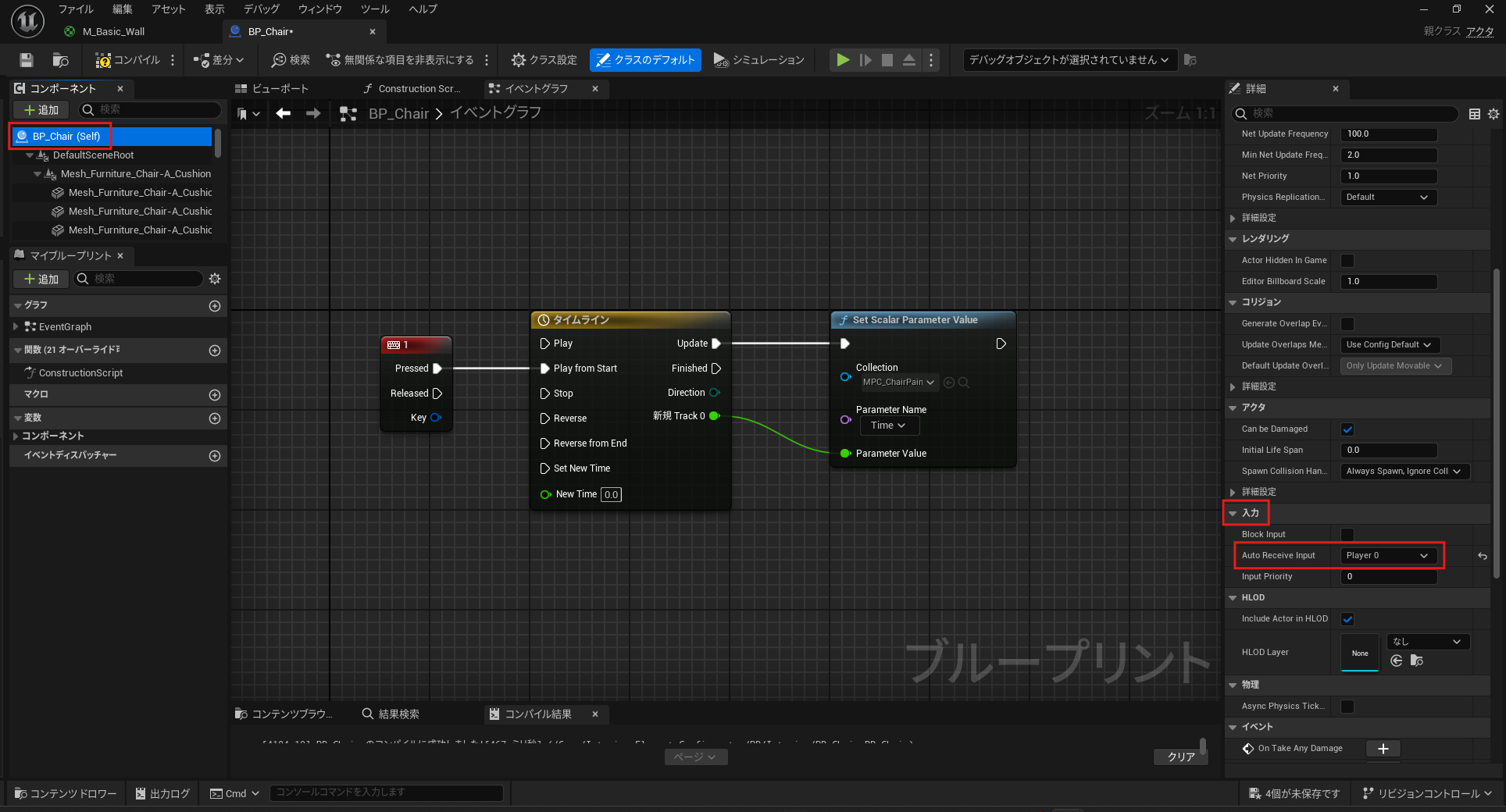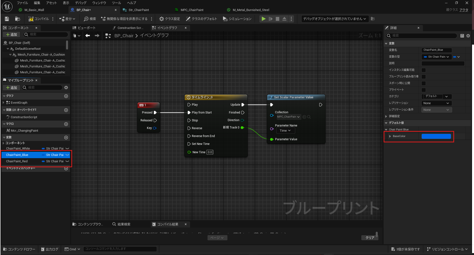 BP_Chairの中でTimeの値を変える処理を追加します。