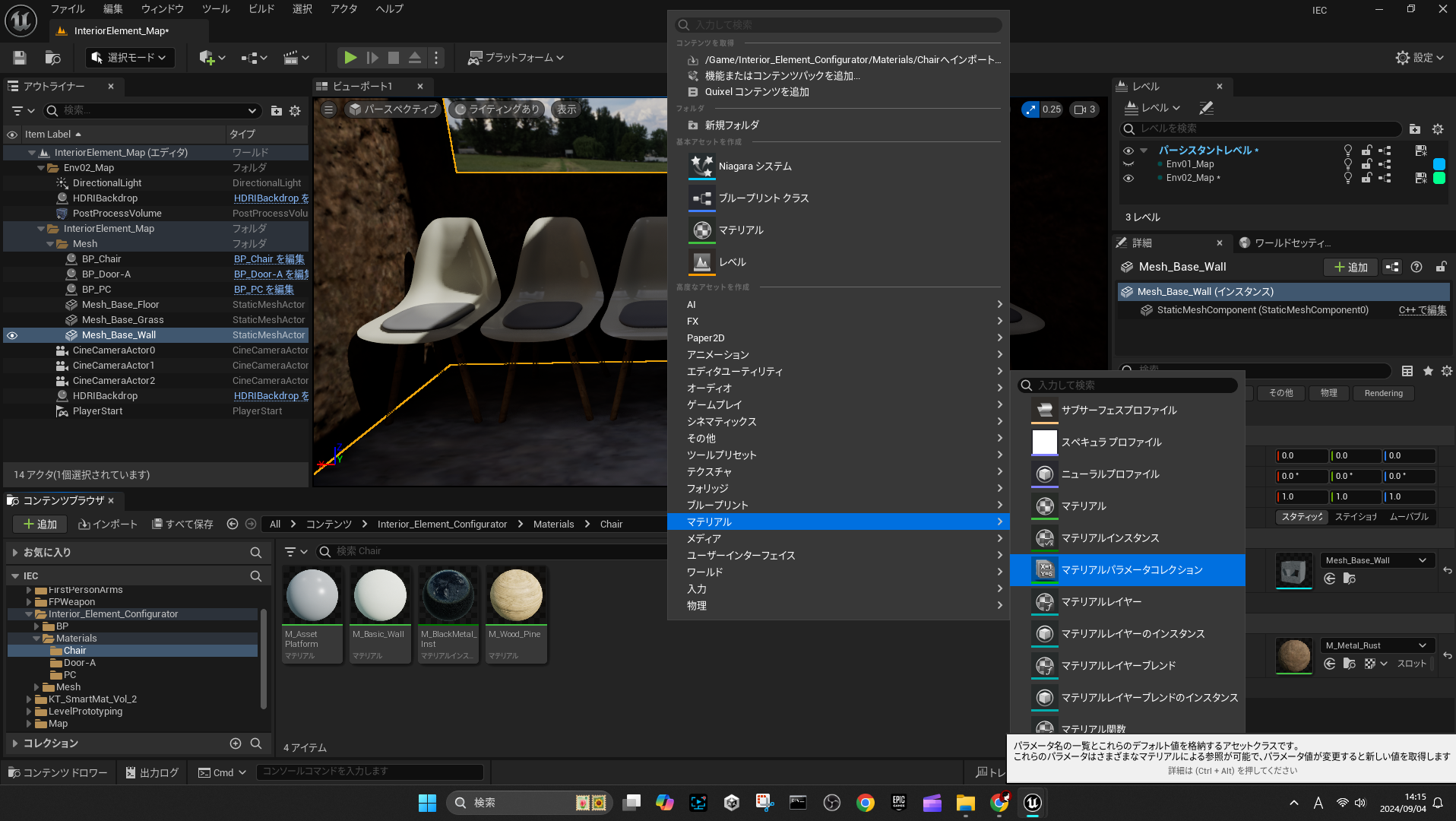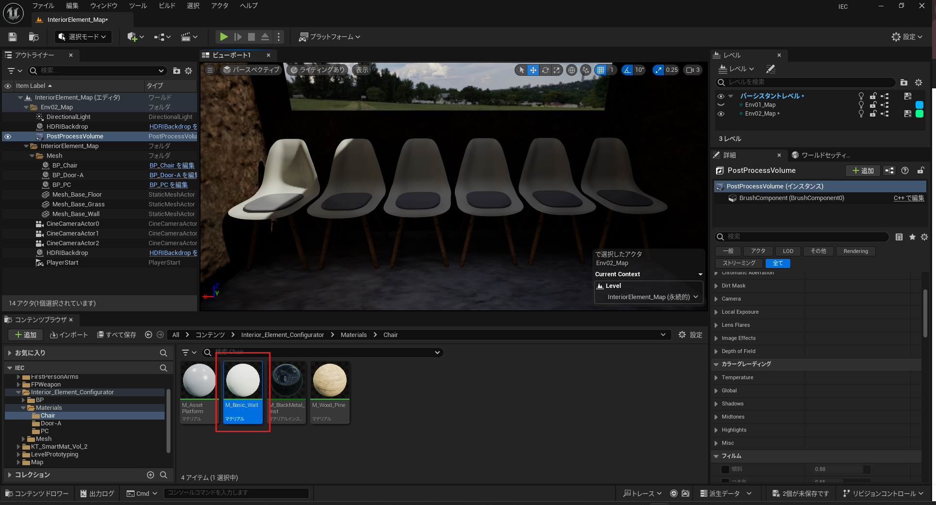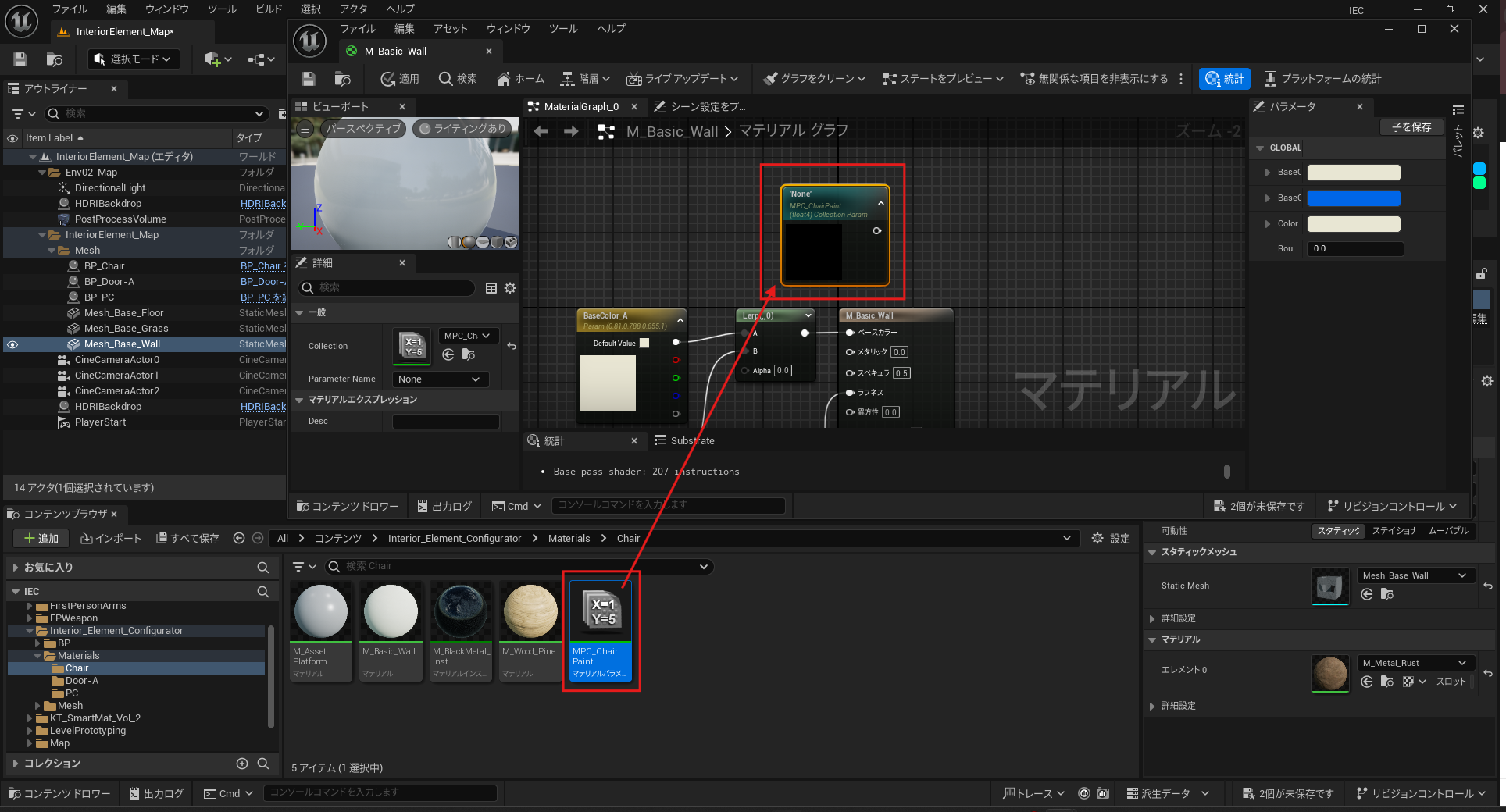 - Materials And TexturesのMaterial Parameter Collectionを作成します(名前: MPC_ChairPaint)。