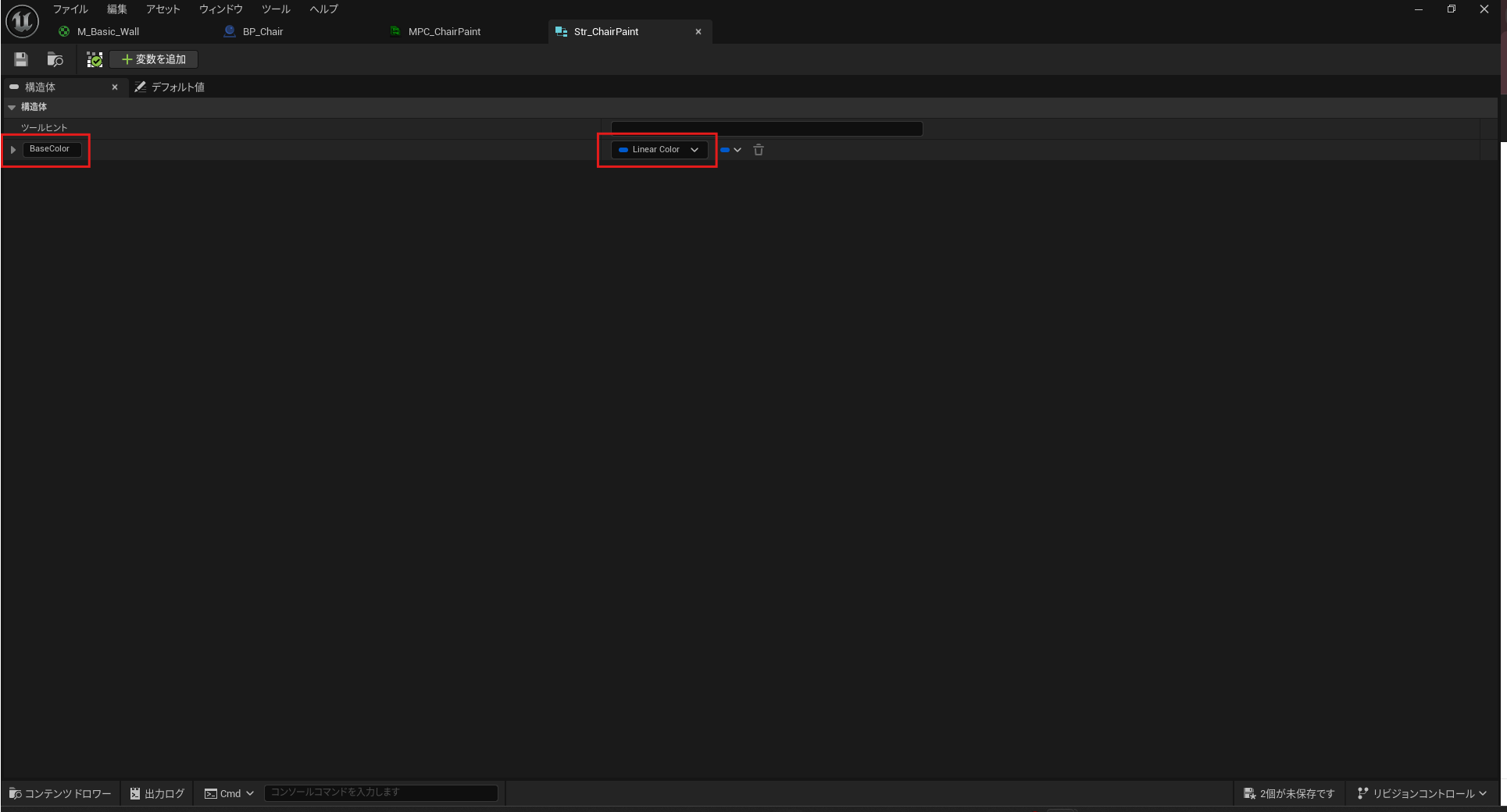 - 「Linear Color」として「BaseColor」と名前をつけます。