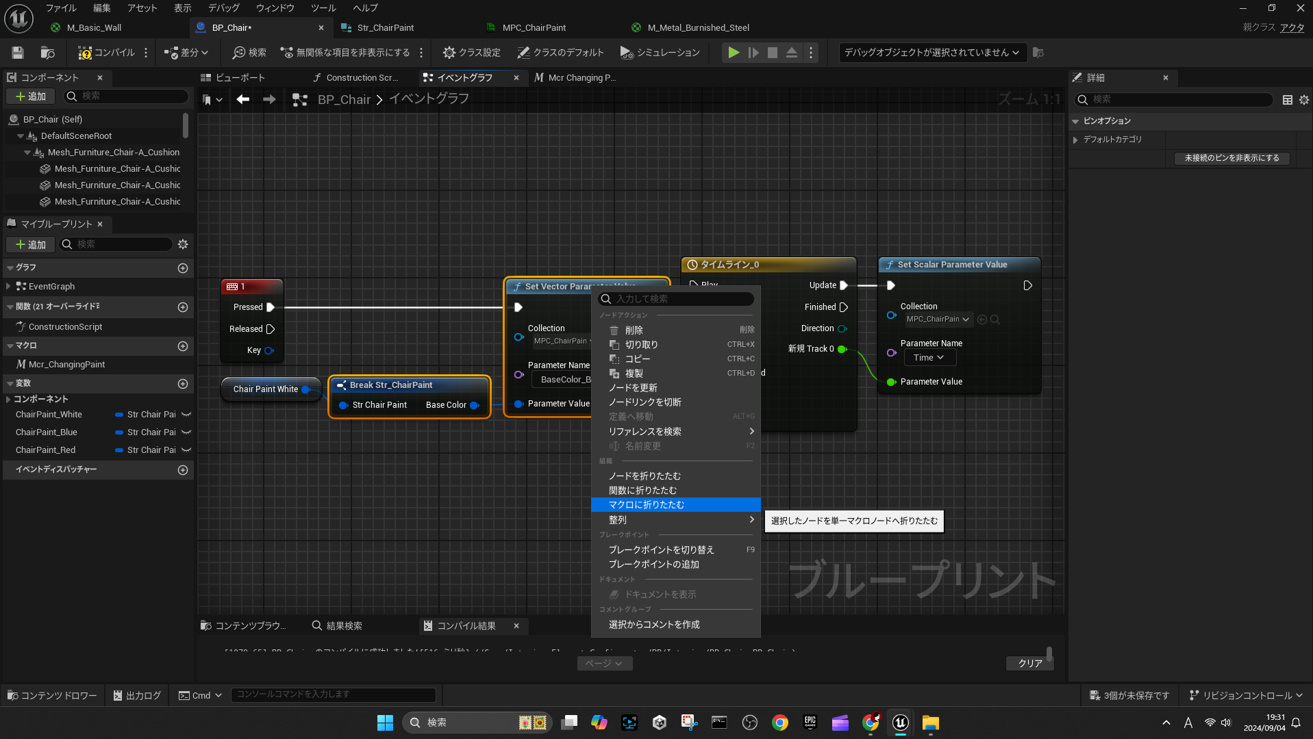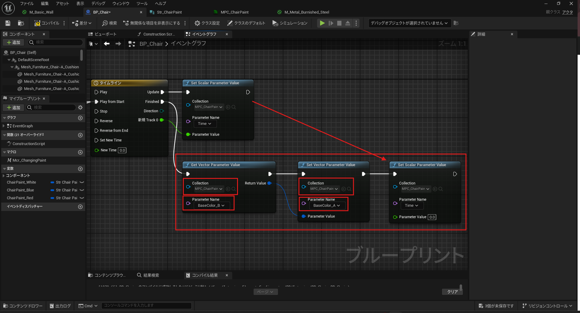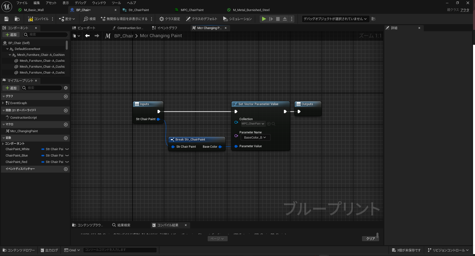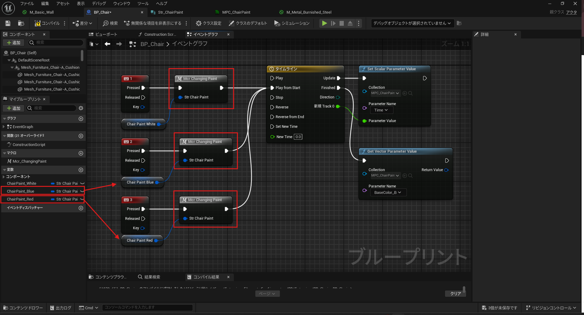 - MPC_ChairPaintをドラッグしてM_ChairPaint_Masterに配置します。