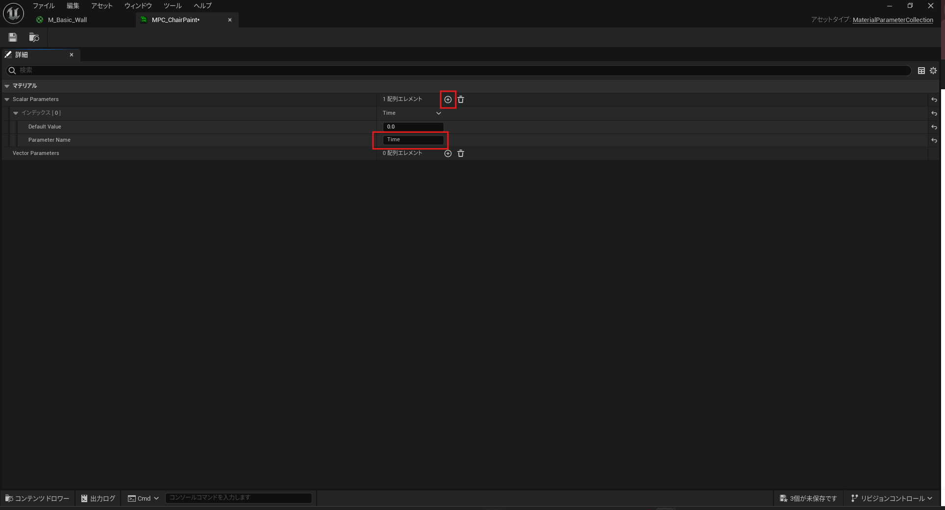 次に、Material Parameter Collection (MPC)を作成し、パラメーターを追加します。