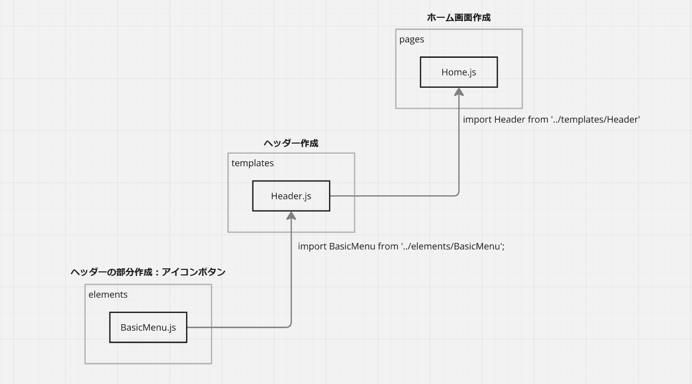 親をHome、子をHeaderとしてホーム画面のヘッダーにABCと表示する(親コンポーネントで子コンポーネントが使われている状態)