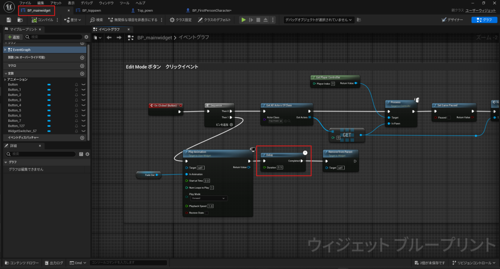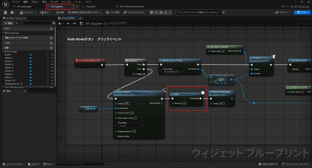 - BP_Main_Widget でアニメーションの再生後に0.5秒の遅延を追加します。